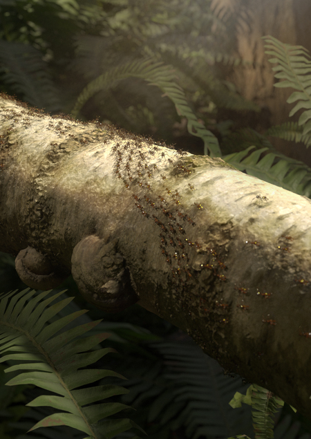 Поведение муравьёв создано с помощью симуляции частиц